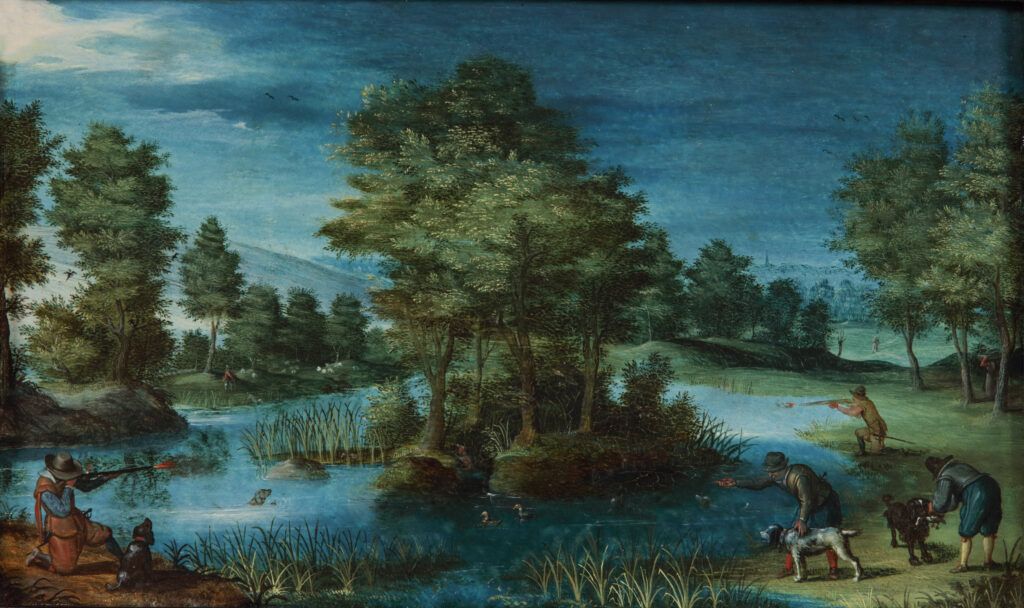 A River Landscape with Hunters