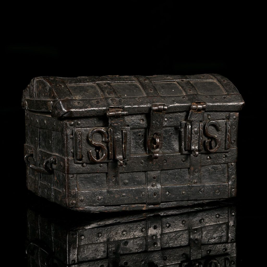 An iron bound domed Casket