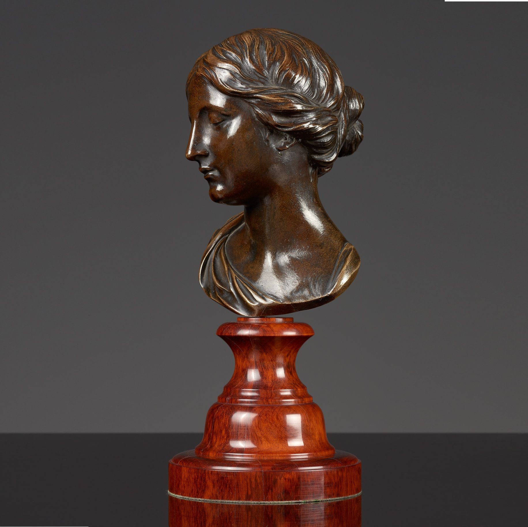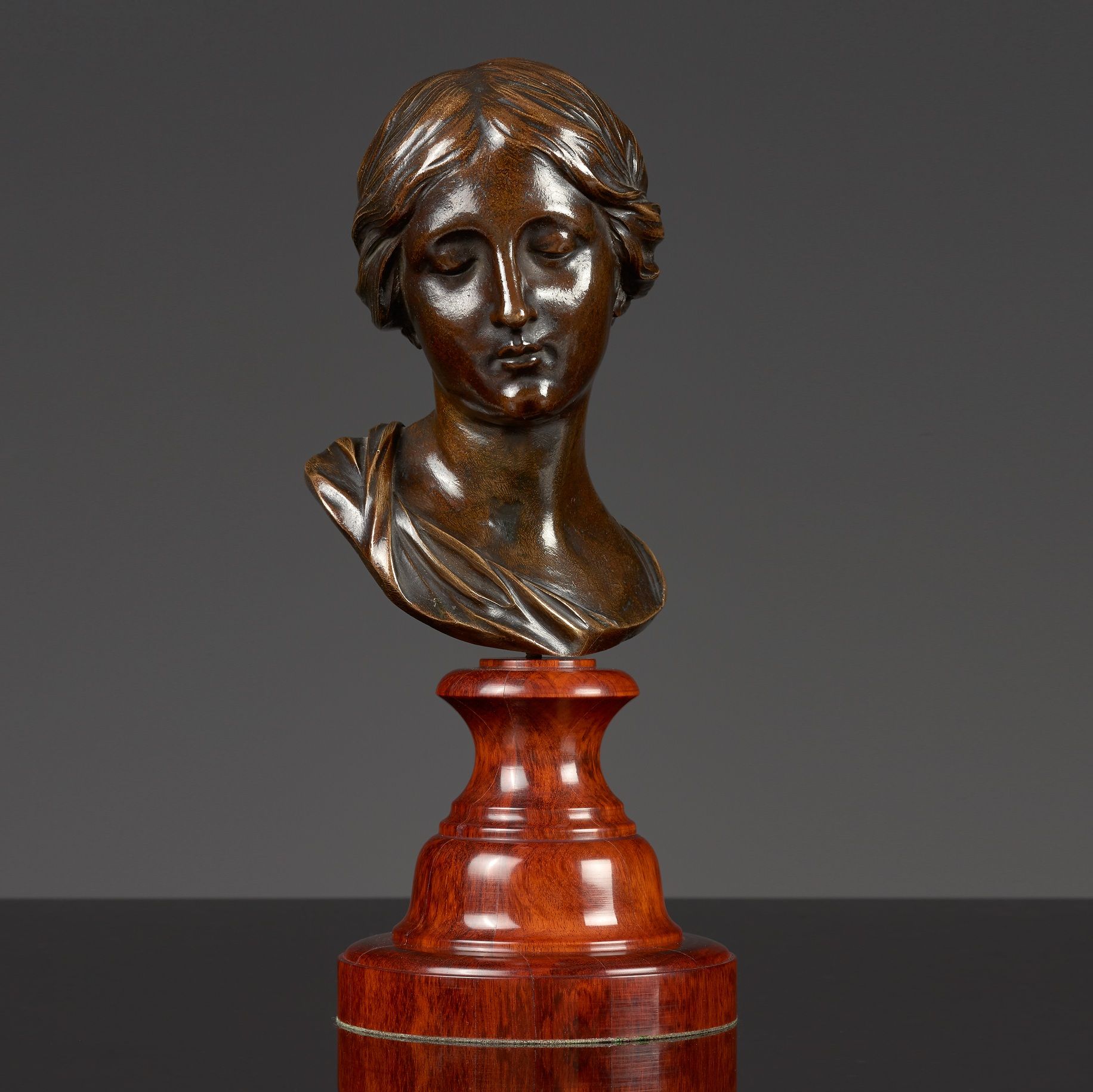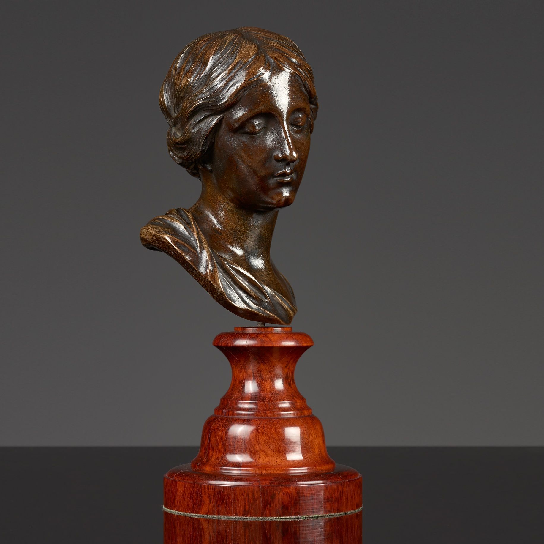 This bronze bust is a version of the copy made after the marble statue of Saint Susanna in church of Santa Maria di Lorenzo in Rome, commissioned from Du Quesnoy in 1628. This copy was cast in France, almost certainly Paris, in the second half of the seventeenth century. The hair of the Madonna is very finely chased. This chasing bears great similarity to the chasing of the hair of the bust of Amor in the Kunsthistorisches Museum in Vienna. The iron core still resides in the bust, which implicates that this cast was made by means of the ‘cire perdue’ method. Other copies of this small bronze were to be found in the Russian collection of Paul Delaroff, auctioned in Paris in 1914 (lot 526), the collection of the Italian Ambassador in Vienna, presently in the Palazzo di Veneziani in Rome, and in the collection of Sir Brinsley Ford.