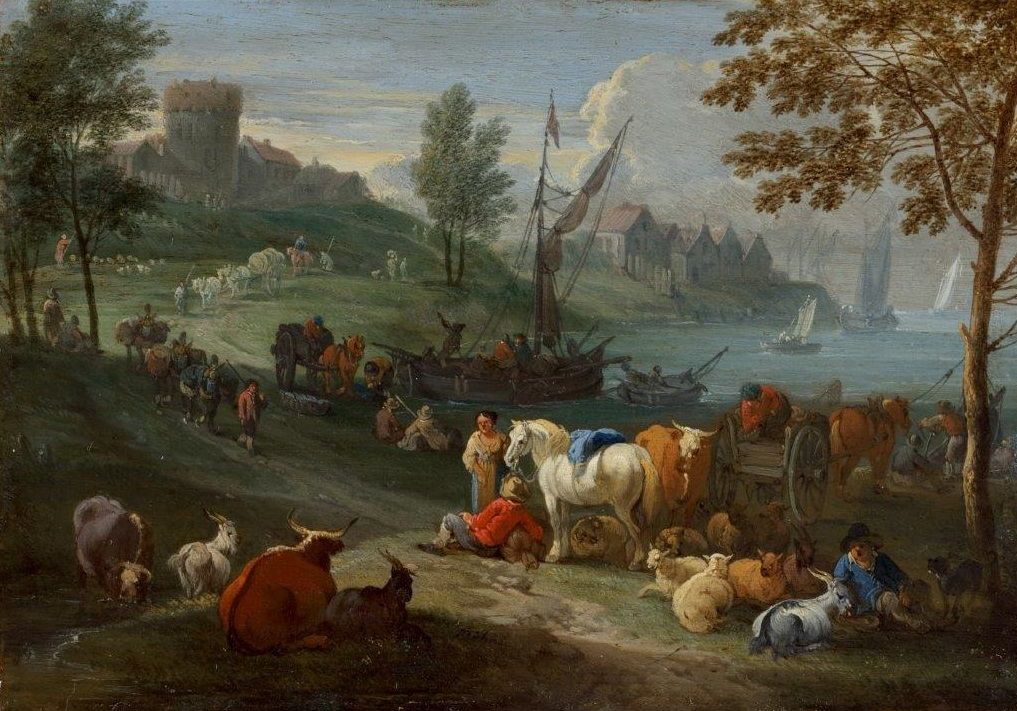 This particularly fine work on copper is a characteristic landscape by the Walloon born master Théobald Michau. This anecdotal landscapes with atmospheric perspective in blue and green heavily reliant on and continue the tradition of landscape painting begun by Jan Brueghel the Elder. Michau continued this Flemish landscape tradition, combined with the genre tradition of David Teniers the Younger.